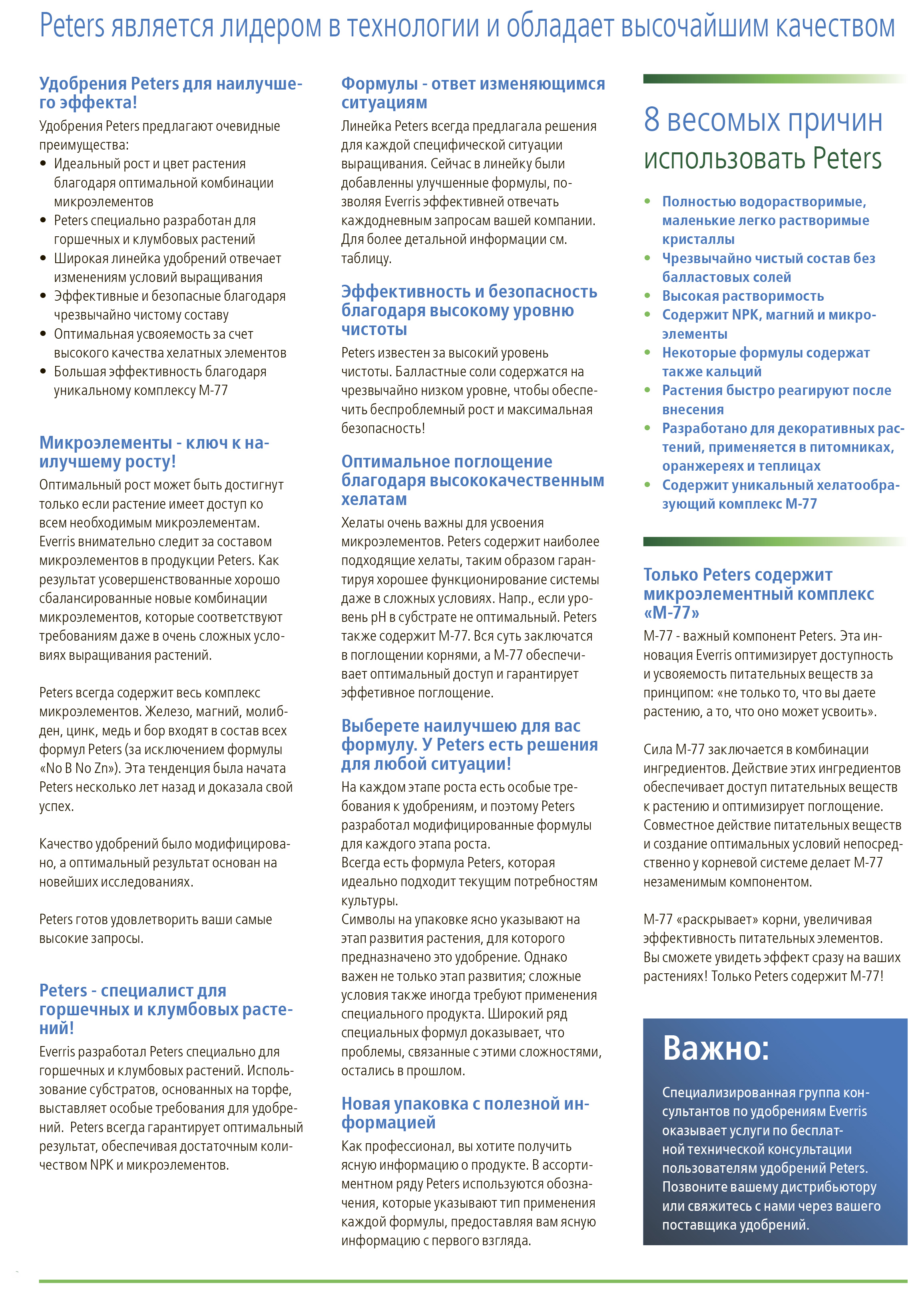 - Только удобрения Peters Professional содержат уникальную хелатирующую формулу M-77!