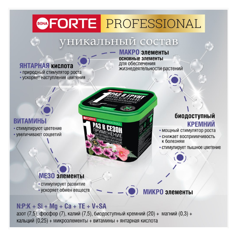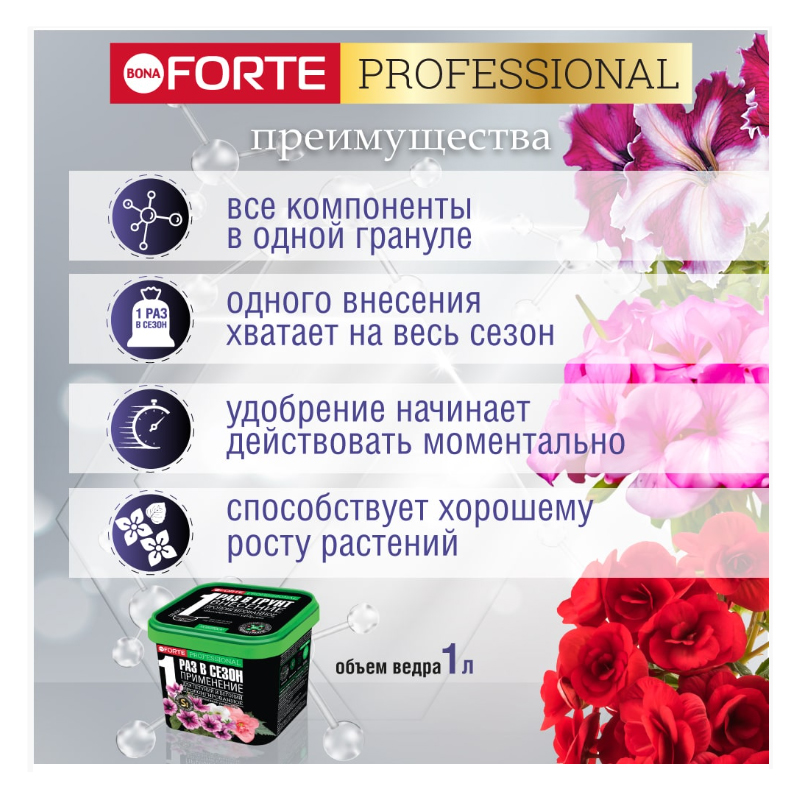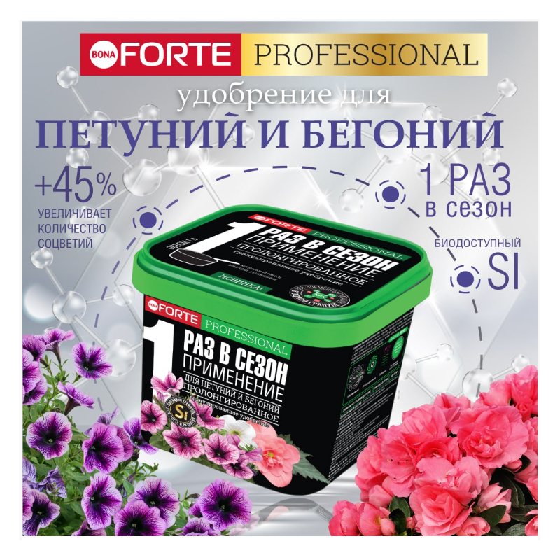 Удобрение пролонгированное Bona Forte "Для петуний и бегоний" с биодоступным кремнием, 1 л