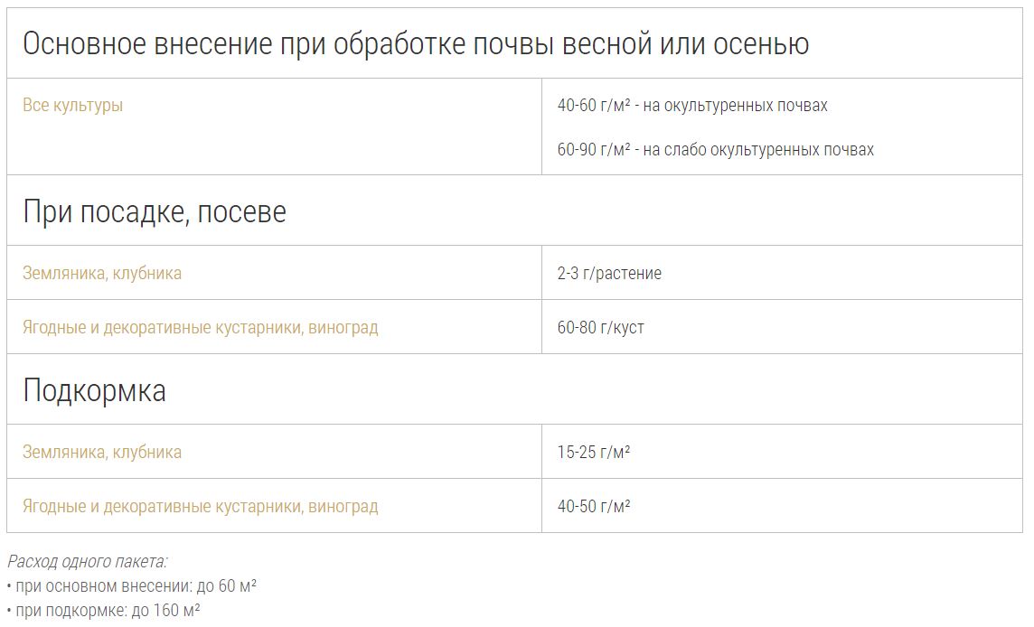 При посеве и посадке земляники – удобрение вносят (1-2 г на растение) в рядки или лунки и перемешивают с почвой.