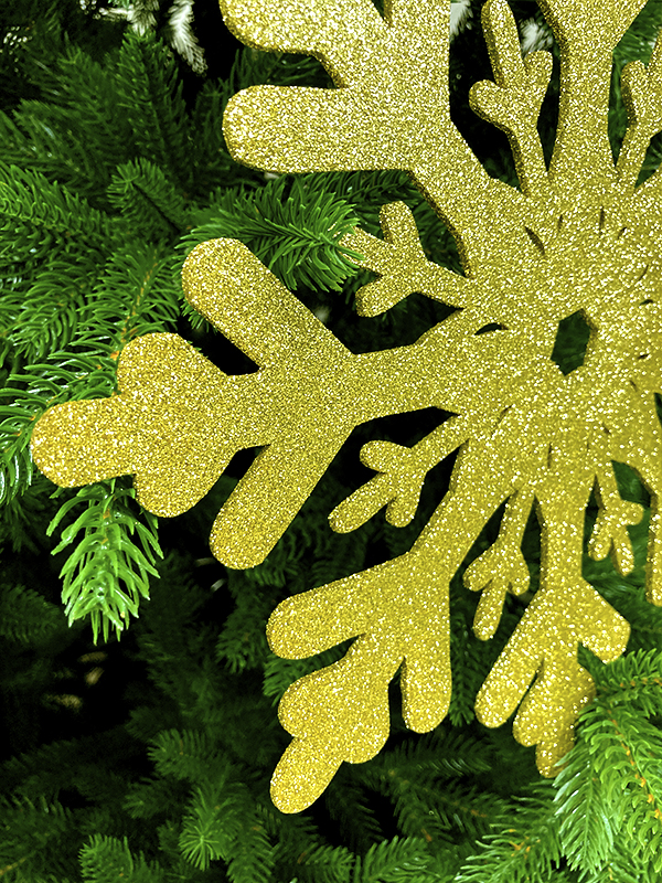 - Снежинки имеют стойкое к атмосферным факторам покрытие, потому могут использоваться для уличных елей.