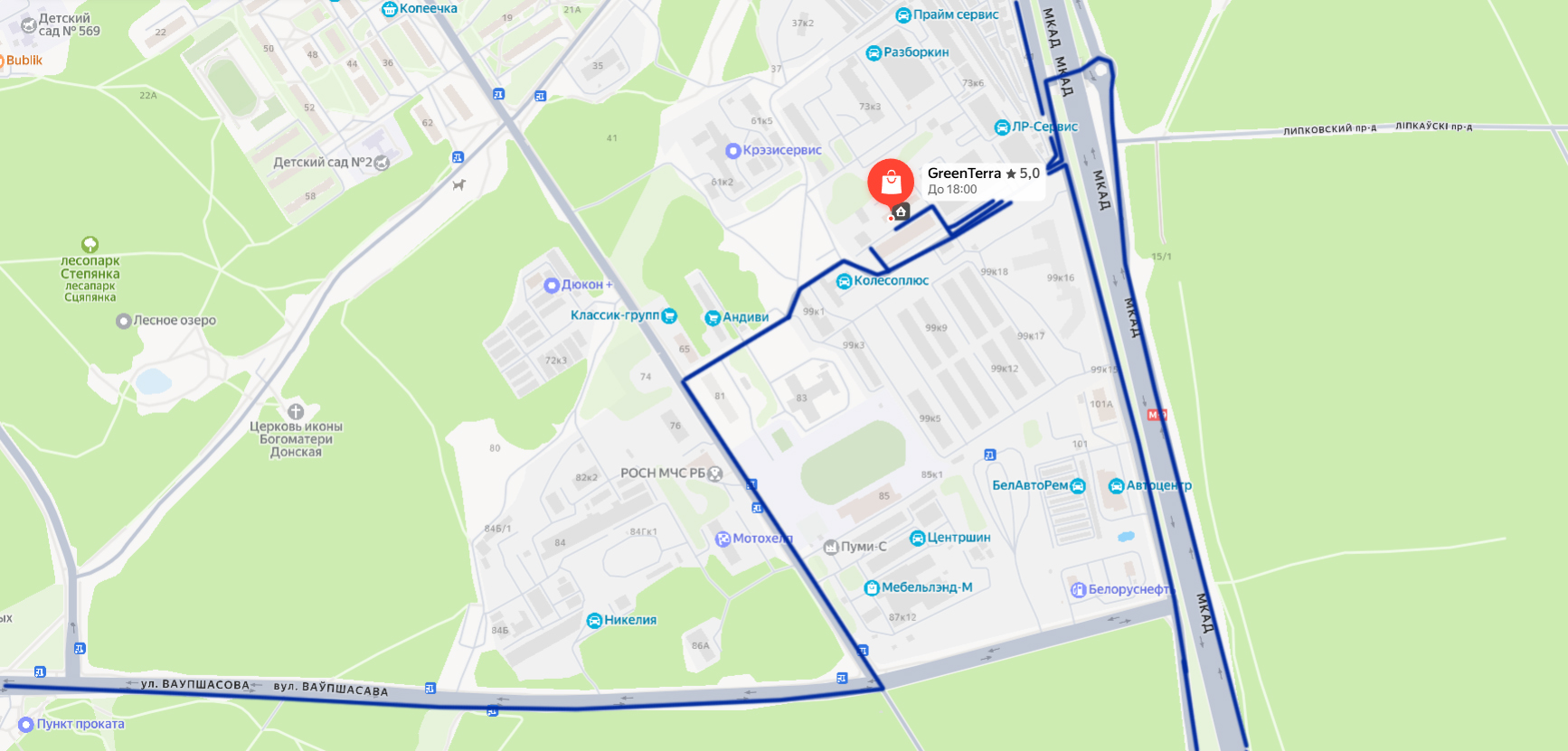 Схема проезда в магазин ГРИНТЕРРА